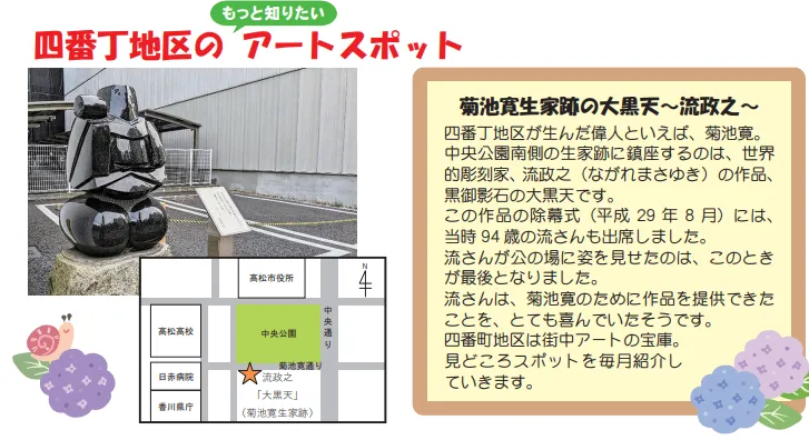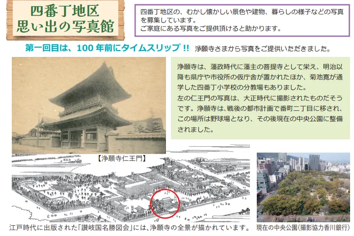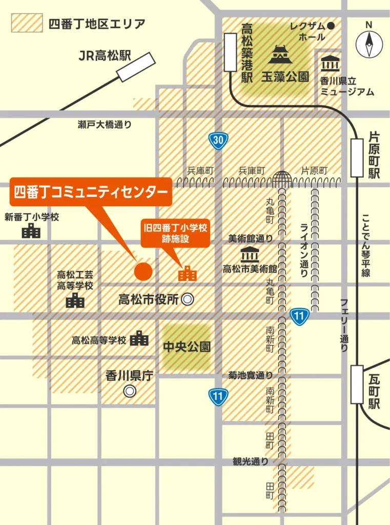 四番丁地区は、県都高松市の中心部、県庁、市役所、中央公園、中央商店街に高松城跡までが入る、まさにど真ん中。