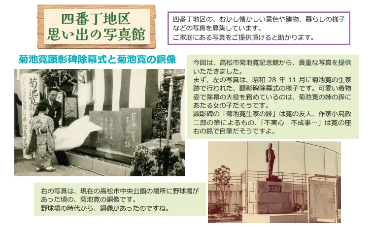 卒業生には、文豪菊池寛や向田邦子、政界で活躍した三木武吉、成田知巳、日ハム創業者の大社義規など多数の先覚者が名を連ねています。