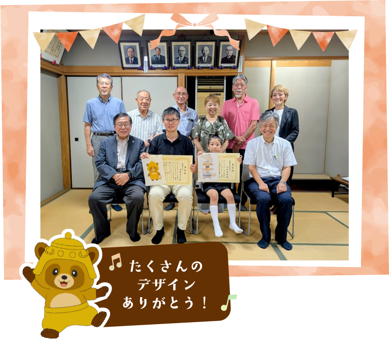 幸せを呼ぶ浄願寺の狸「ハゲさん」の新しいデザインの表彰式を行いました。